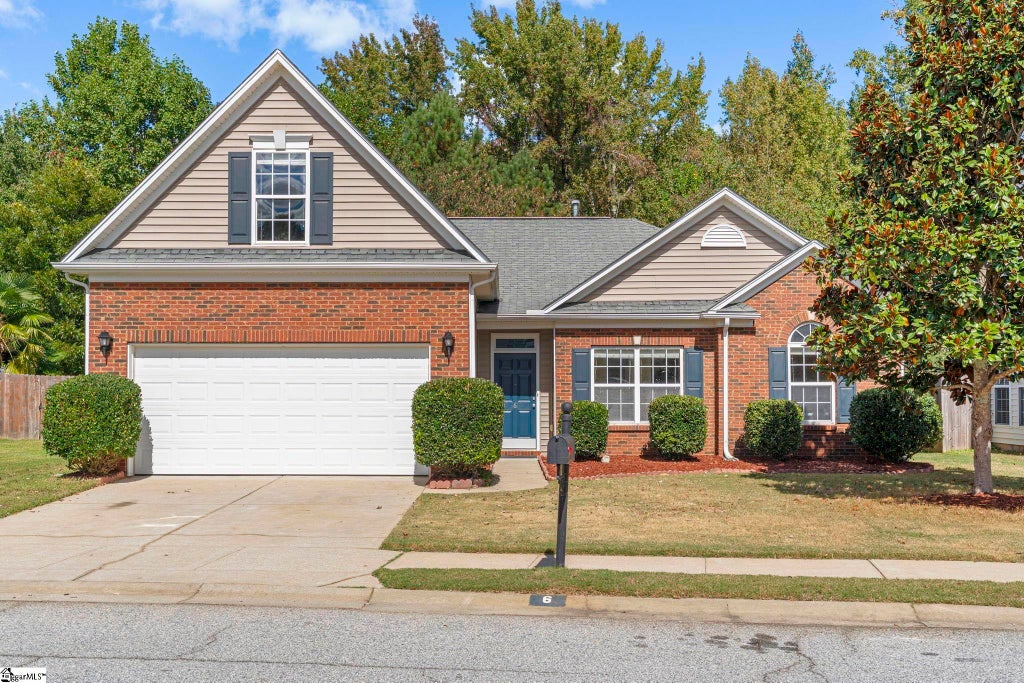 If you are looking for single-level living and a low-maintenance home in move-in condition then look no further. This 4 bedroom home offers an ideal floor plan with 3 bedrooms on the main level (all have walk-in closets) and a 4th bedroom/bonus room upstairs. The owner's suite is extremely spacious at 19x13 and features a 8x8 walk-in closet and 5 piece master bath with dual sinks, a garden tub, and separate shower. The kitchen overlooks the great room and features a breakfast area. The great room has a gas logs fireplace and entertainment niche. Other features of the home include a fenced-in yard with oversized patio (14x12), full irrigation system, security system, and more. Lots of updates have been done to make the home move-in ready - all new carpet, entire home has been freshly painted, new granite countertops, and a new kitchen tile backsplash. Listing agent is the owner of this property. 2024 taxes were based on 6% non-owner occupied - for an owner occupant, per Greenville County's tax estimator, taxes would be $2198 (at a taxable value of $350K). Make an appointment to view this home today!